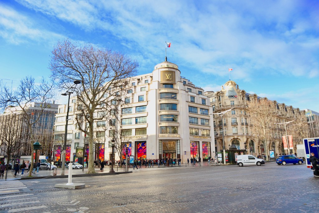 Champs Elysees Avenue dikenal sebagai jalan perbelanjaan barang mewah di Paris. Jalan Ini membentang sepanjang 1,9 kilometer dari Place de la concorde sebelah timur ke Place Charles de Gaulle dibarat, di mana Arc de triomphe berada.Di sepanjang jalan, ada banyak toko yang menjual produk bermerek kelas atas seperti Louis Vuitton, Zara, Channel, Prada, Kenzo, dll. Bagi para pelancong yang tertarik dengan produk bermerek ini, mengunjungi Avenue Champs Elysees adalah pilihan yang tepat. Persiapkan cukup uang anda. Bila anda hanya sekedar untuk melihat pemadangan dan mengambil foto, pedestarian di Champ Elysees cukup lebar dan bersih sehingga sangat nyaman bagi pelancong untuk berjalan menikmati pemandangan sambil mengambil foto-foto. Jika anda ingin mengunjungi Arc de triomphe, anda bisa sekali jalan karena lokasinya tepat diujung sebelah timur Champs elysees . Sekitar 150 meter dari gerai Louis Vuitton.