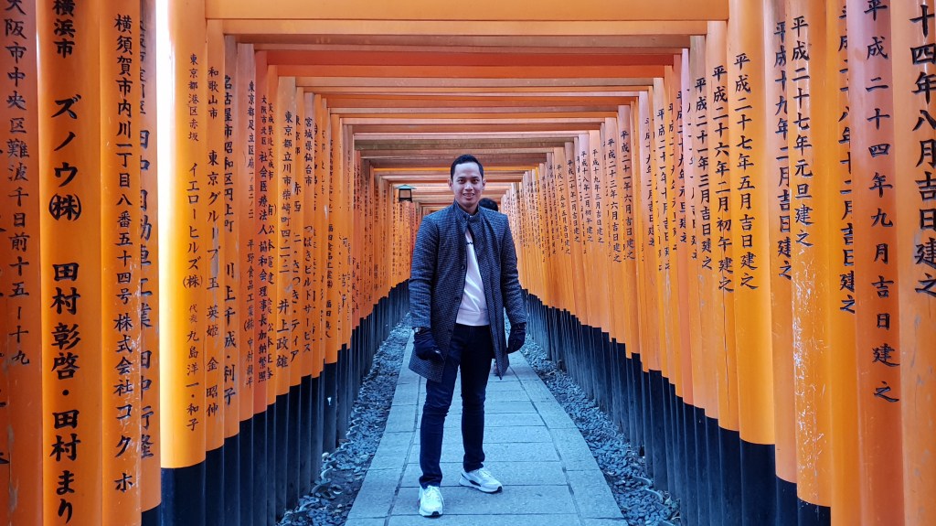 Fushimi Inari Thaisa is a Budhist temple located in Kyoto, Japan. its famous for its thousands of vermilion tori gates. Because its unique architecture, it is visited by million people every year, make it always crowded every day. Therefore if you want to take photo of you without disturbed by others visitor, You must visit it earlier in the morning. Then if you fell hungry after exploring the temple or just want to taste local dishes, there are several restaurant in the temple area.