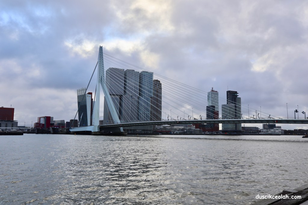 Because the location of the Erasmus Bridge is close to Markthal, I suggest visiting it after visiting the Markthal. You just need about fourteen minutes to arrive at de Boeg (Monument) near the Erasmus Bridge from where you can enjoy the beauty of the Erasmus bridge and the scenery around it.