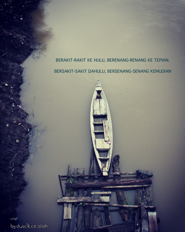 This proverb advises us to be patient in pursuing success. We should work hard first even with hardships, for beter life in the future. Some people try to take shortcuts because they don’t want it hard to pursue success. Eventually they failed and had a bleak future.